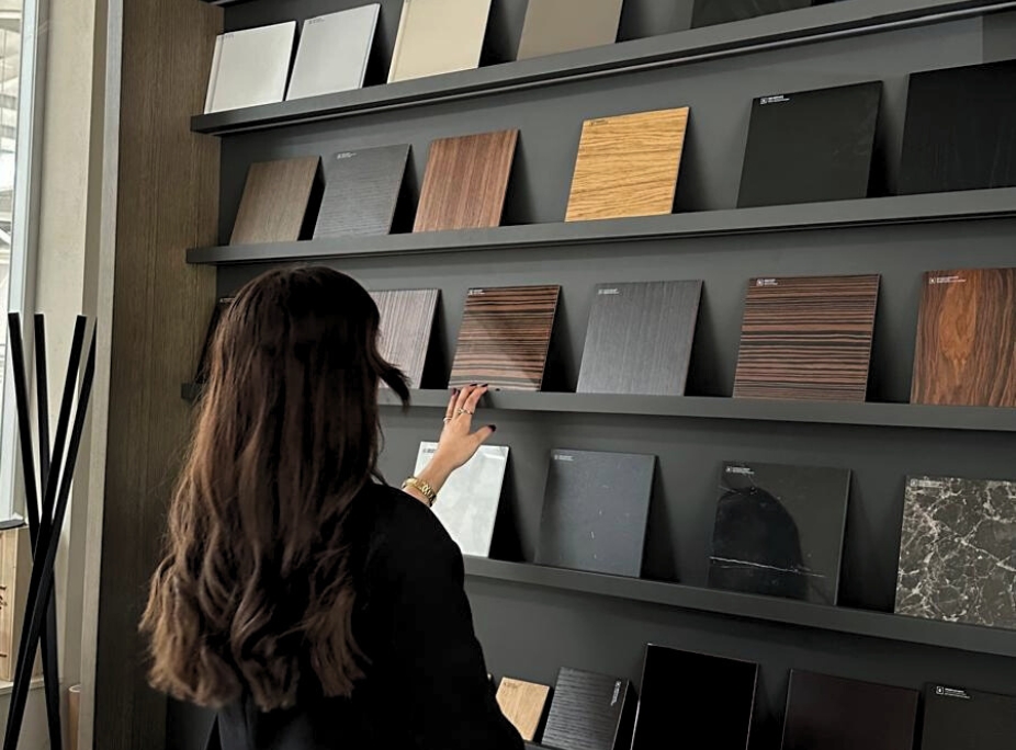 Having a dedicated area in the showroom to display materials is essential for a seamless and efficient client experience. By presenting fabric samples, wood finishes, marbles, and other materials in a clear and organised way, clients can easily explore customisation options and make decisions on-site.