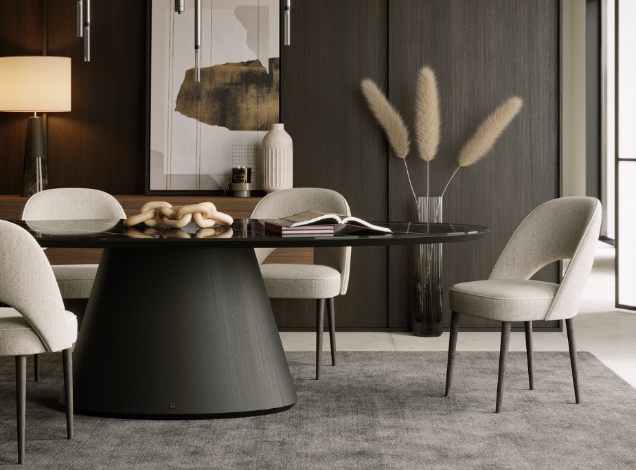 The Kelly Dining Table redefines the traditional dining experience with its bold yet graceful design. Featuring a rounded or oval tabletop and a distinctive sculptural base with softened edges, the Kelly brings a sense of flow and balance to dining spaces. Its curved form encourages a more intimate and inclusive atmosphere, where conversation and connection naturally unfold.