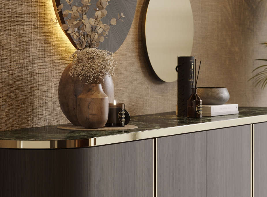 Its curved form not only enhances visual harmony but also softens the overall feel of living and dining areas, aligning perfectly with the contemporary preference for more organic interiors. As curves continue to influence modern design, the Brown Sideboard stands out as a bold yet refined statement—where practicality meets poetic form.