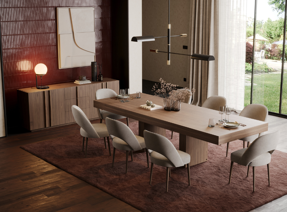 Sala de jantar com Aparador Macau, Mesa de Jantar Isis e Cadeiras Amour.