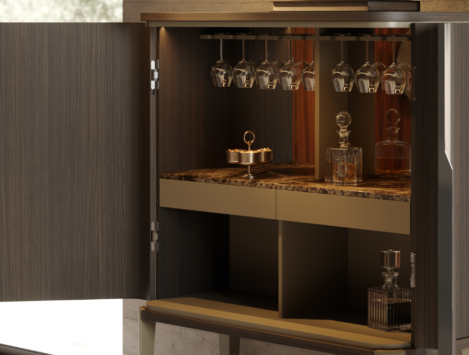 O Móvel de Bar é uma peça de mobiliário capaz de tornar qualquer ambiente mais charmoso e acolhedor. Desenhado para centralizar copos, garrafas e acessórios complementares, é perfeito para acolher convidados, seja na sala de estar ou sala de jantar.